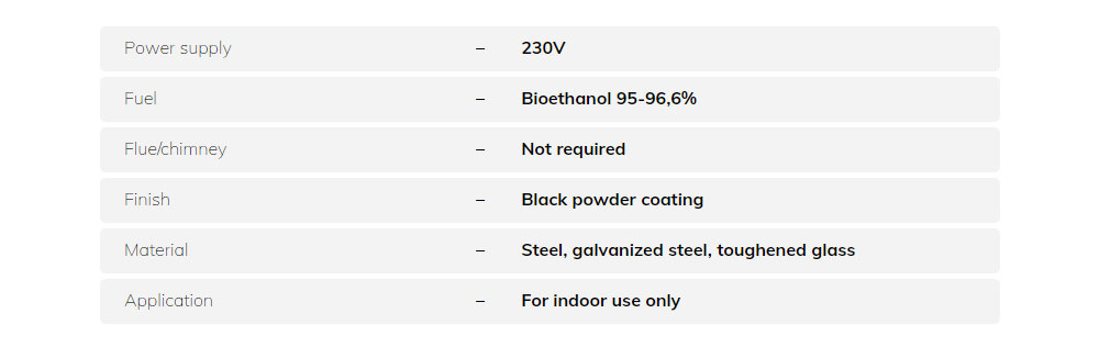 Neo Fireplace este un semineu automat cu bioetanol cu o tehnologie BEV® (Burning Ethanol Vapors) implementata si cu sisteme de siguranta, cum ar fi senzori de caldura, scurgeri de combustibi.. -