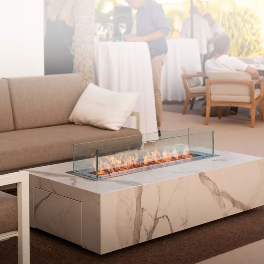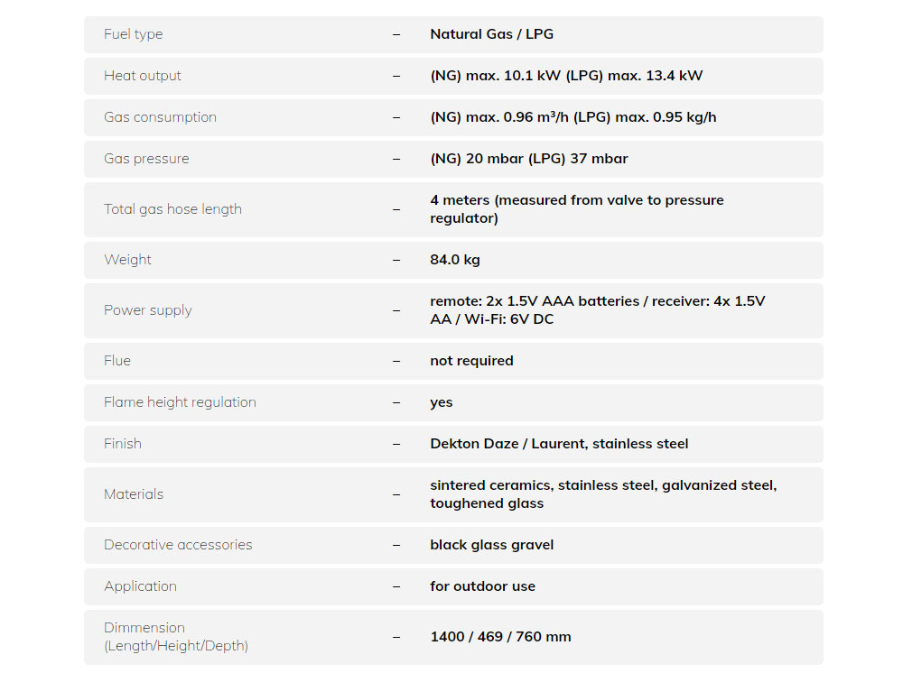 Transformati spatiul in aer liber cu Galaxy Table – Masa de foc suprem pentru design premium! Dispune de o cutie ceramica sinterizata Dekton de 12 mm de inalta performanta, care rezista la zgarieturi, pete si temperaturi ridicate. Alegeti intre GPL sau gaz natural si adaugati o nota de lux cu finisajul nostru elegant din otel inoxidabil si pietris de sticla neagra.