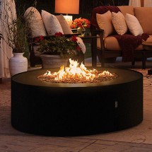 Masa de cafea si semineu2-in-1. Dimineata, acopera vatra de foc cu capacul pentru a obtine o masa mai mare, perfecta pentru cafeaua de dimineata. Seara, indeparteaza capacul si dezvaluie foc.. -