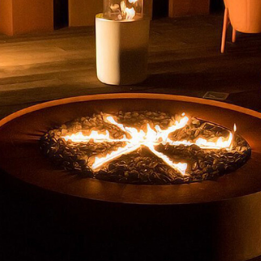 Flacara multidimensionala a semineului de sine statator Galio Star Corten va deveni un spectacol instantaneu in spatiul exterior. Deoarece nu necesita nicio conexiune rigida, il puteti muta cu usurinta pe terasa. Fabricat din otel Corten rezistent la intemperii, acest semineu va adauga stil oricaror spatii comerciale sau rezidentiale. Disponibil in doua tipuri de alimentare cu gaz: Gaz Natural sau GPL. In plus, Galio Star Corten ofera posibilitatea de reglare a dimensiunii flacarii.