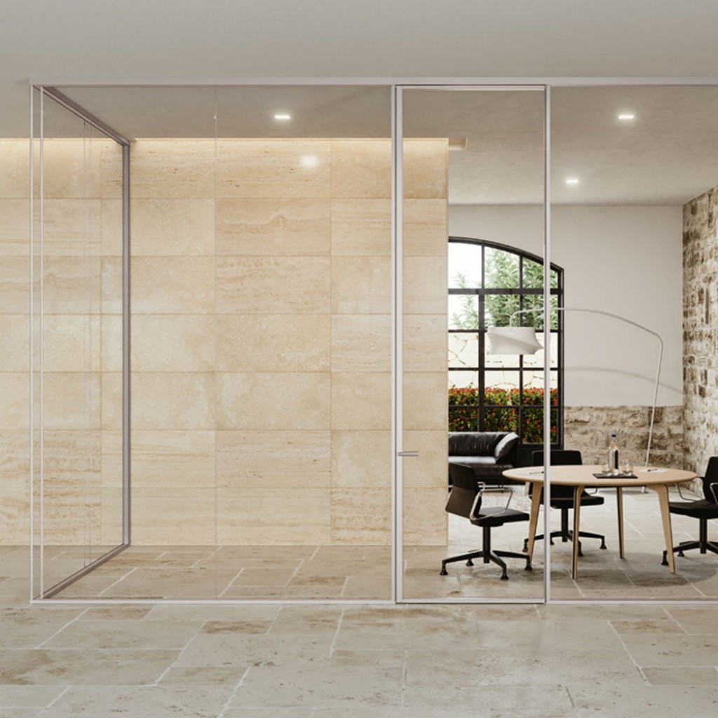 A65 este un sistem de pereti despartitori unici si inovatori, ce pot fi complet personalizati in functie de spatiu pe care il detineti. A65 reprezinta un sistem modular, flexibil si integrabil, cu pereti si tavane proiectate cu detalii din aluminiu, fara profile expuse.