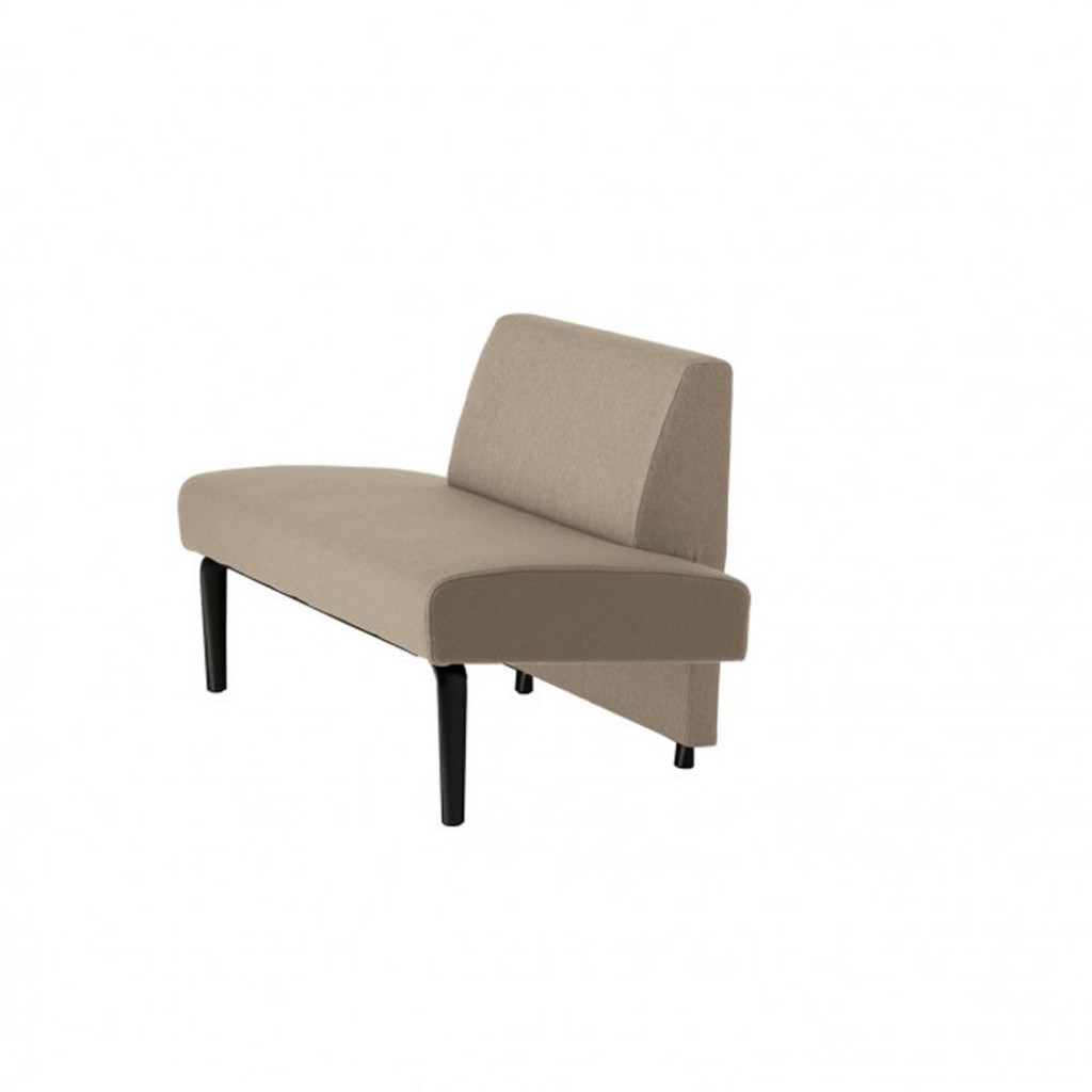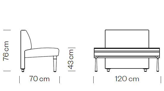 Sistem modular. Modul liniar L 120 cm. Sezut si spatar tapitate. Cadru din otel. Spatar H 100 cm. Accesorii: Inchidere spatar cu panou tapitat. Inchidere partea inferioara a cadrului cu pano.. -