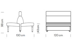 Sistem modular de asezare, tapitat. Poate fi alaturat cu celelalte sisteme modulare Ambit, din colectia Metalmobil.Dimensiuni:..