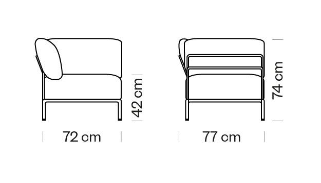Sistem modular de asezare, tapitat. Poate fi alaturat cu celelalte sisteme modulare Ambit, din colectia Metalmobil.Dimensiuni:.. -