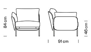 Materiale: cadru din tija de otel vopsita cu pulbere de poliester. Perne din poliuretan expandat cu husa detasabila din material textil (Velvet Dama, Kvadrat Divina MD, Kvadrat Divina Mélang.. -