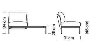 Sistem modular. Modul liniar L 90 cm. Sezut si spatar tapitate. Cadru din otel. Spatar H 140 cm. Accesorii: Inchidere spatar cu panou tapitat. Inchidere partea inferioara a cadrului cu panou.. -