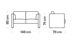 Sistem modular. Canapea cu 2 locuri, cu cotiere. Sezut, spatar si cotiere tapitate. Perne laterale incluse.