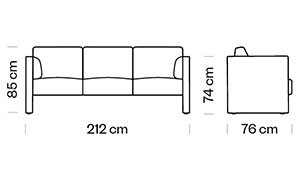 Sistem modular. Canapea cu 3 locuri, cu cotiere. Sezut, spatar si cotiere tapitate. Perne laterale incluse.