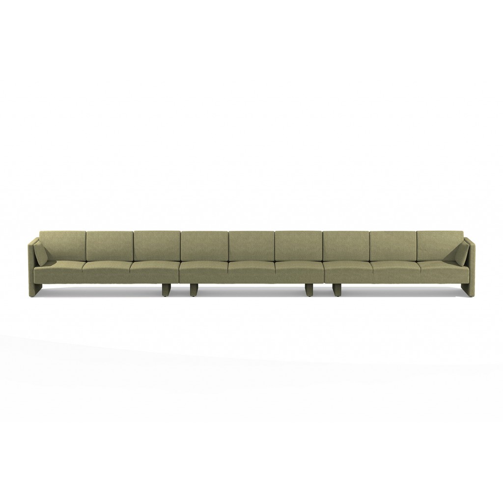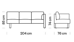Sistem modular. Canapea cu 3 locuri, cu cotiera dreapta. Sezut, spatar si cotiera tapitate. Perna laterala inclusa.