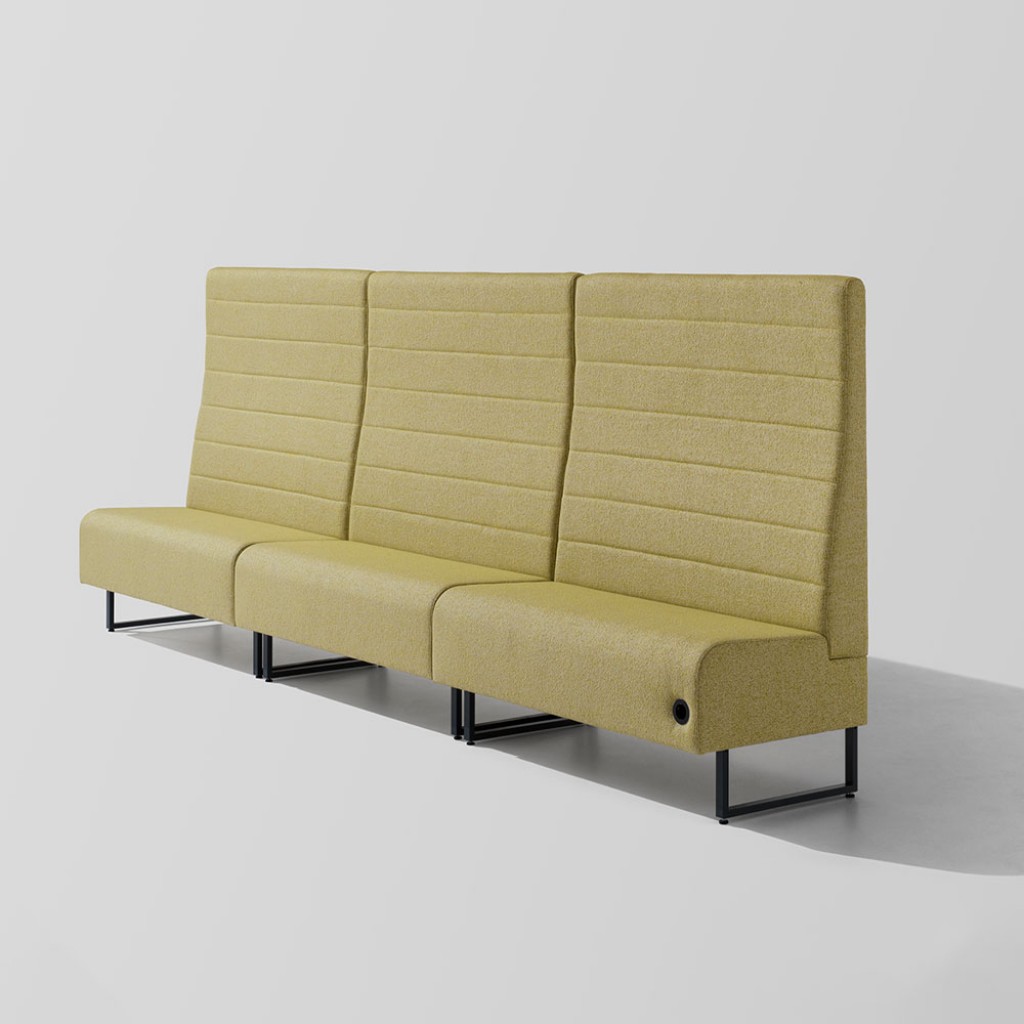Sistem modular. Modul de colt. Sezut si spatar tapitate. Cadru din otel. Inaltimea sezutului este de 75 cm. Accesorii: Inchidere spatar cu panou tapitat. Priza Schuko sau USB pe tapiteria sc.. -