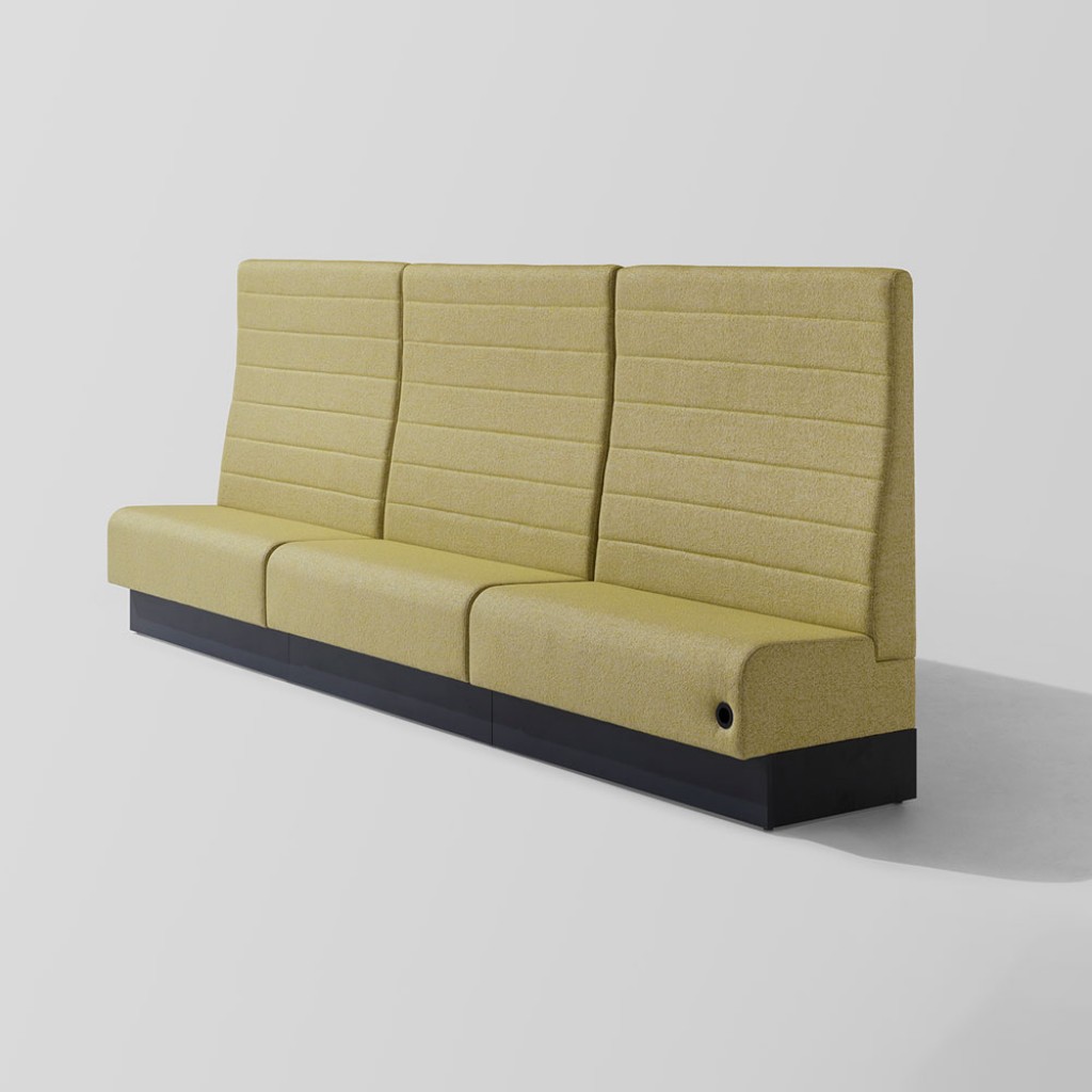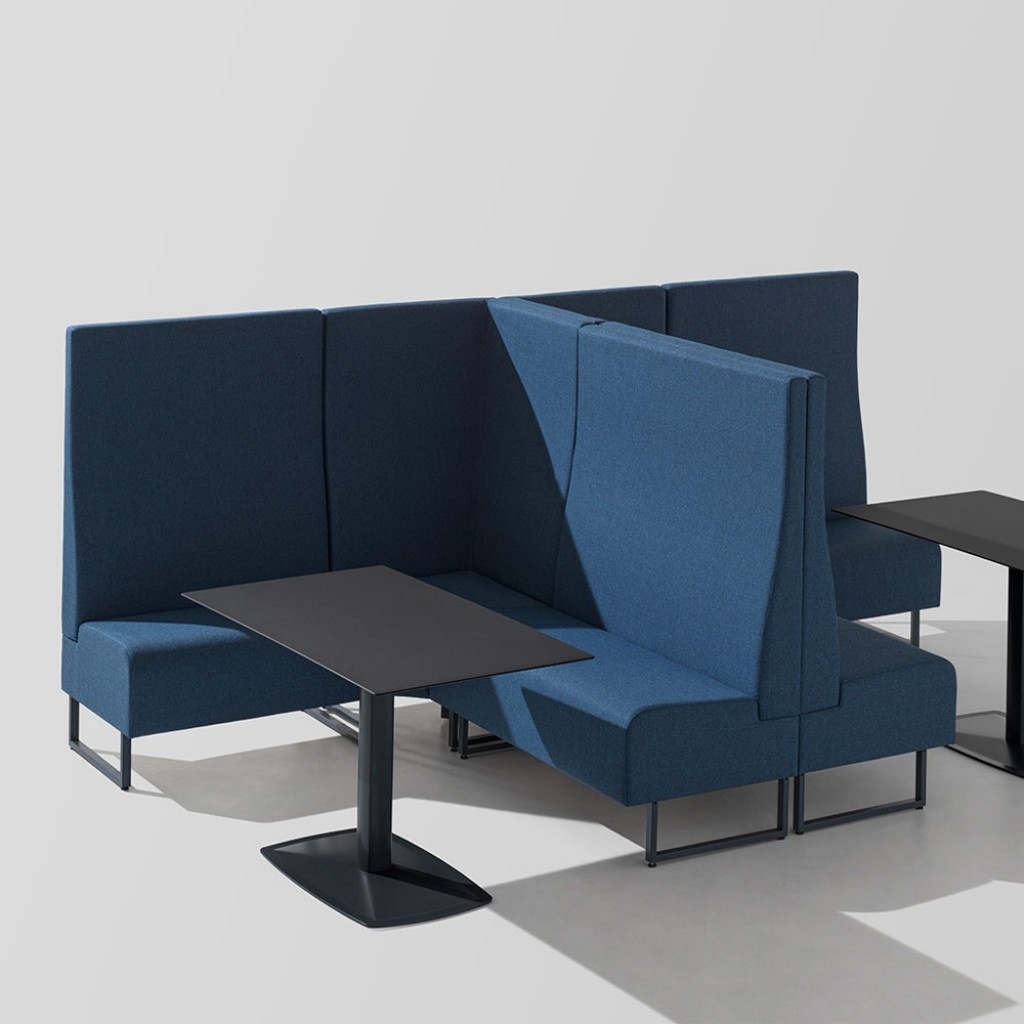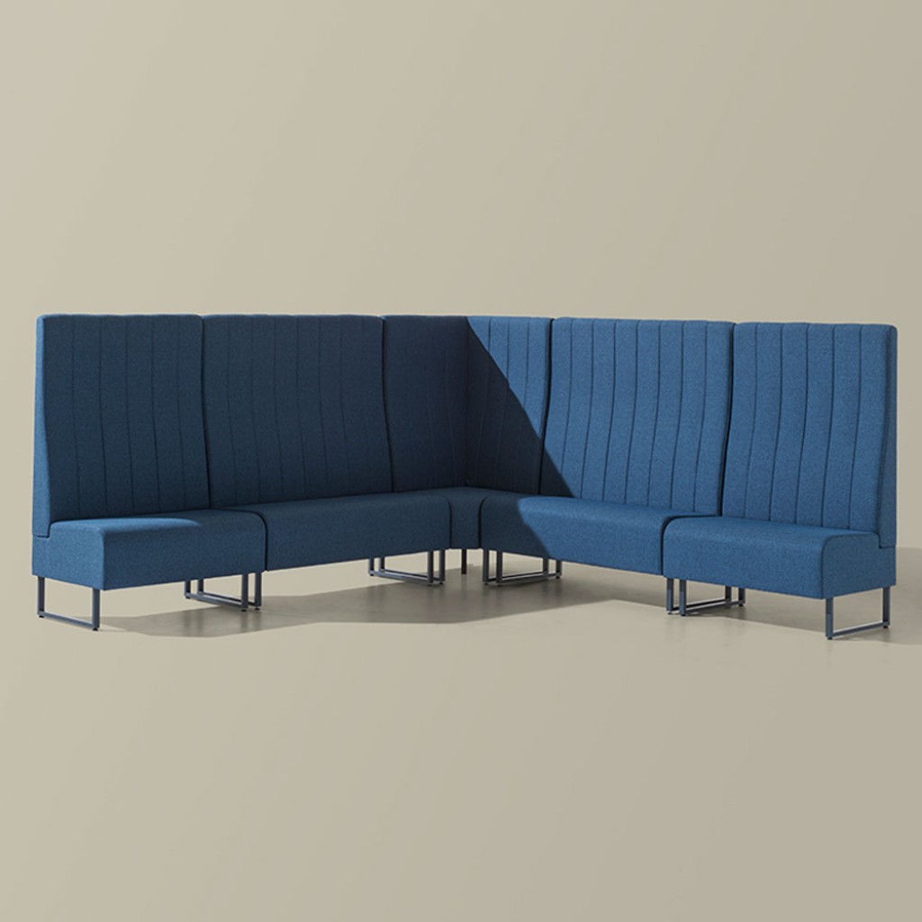 Sistem modular. Modul de colt. Sezut si spatar tapitate. Cadru din otel. Inaltimea sezutului este de 75 cm. Accesorii: Inchidere spatar cu panou tapitat. Priza Schuko sau USB pe tapiteria sc.. -