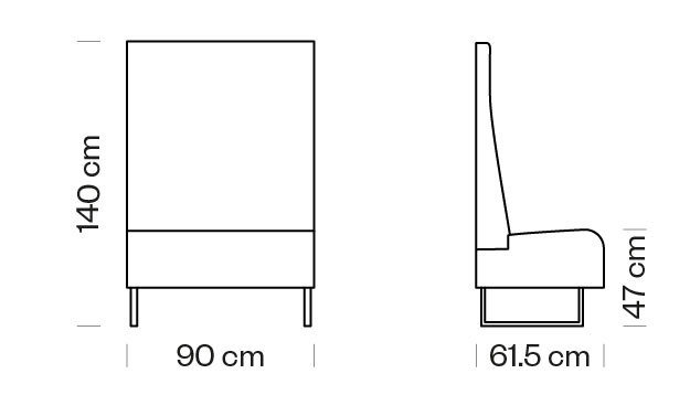 Sistem modular. Modul liniar L 90 cm. Sezut si spatar tapitate. Cadru din otel. Spatar H 140 cm. Accesorii: Inchidere spatar cu panou tapitat. Inchidere partea inferioara a cadrului cu panou laminat. Priza Schuko sau USB pe tapiteria scaunului fata