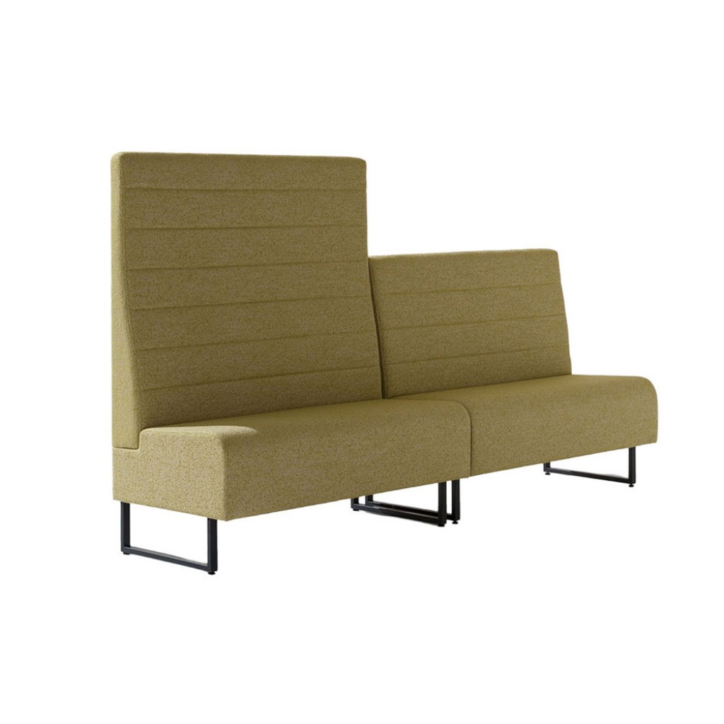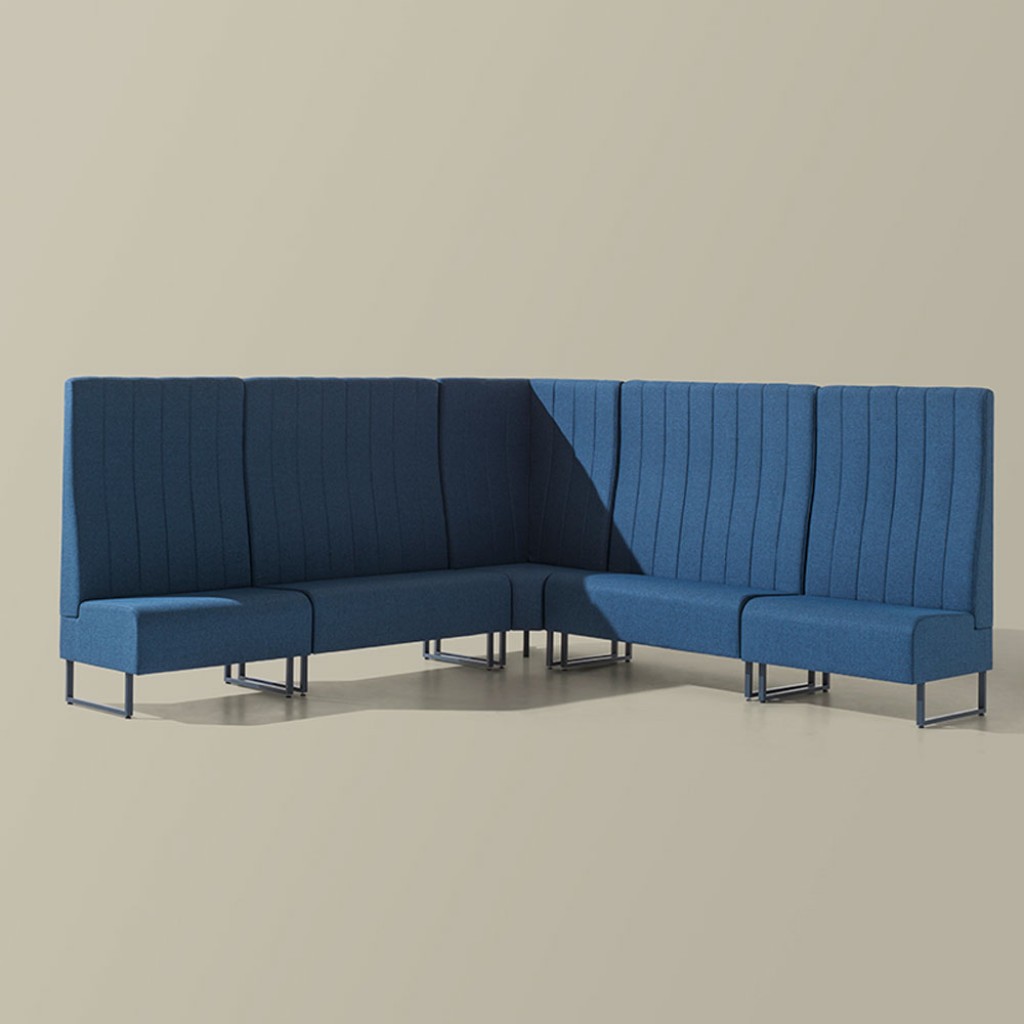 Sistem modular. Modul de colt. Sezut si spatar tapitate. Cadru din otel. Inaltimea spatarului 100 cm. Accesorii: Inchidere spatar cu panou tapitat. Inchidere partea inferioara a cadrului cu .. -