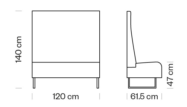 Sistem modular. Modul liniar L 120 cm. Sezut si spatar tapitate. Cadru din otel. Spatar H 100 cm. Accesorii: Inchidere spatar cu panou tapitat. Inchidere partea inferioara a cadrului cu pano.. -