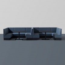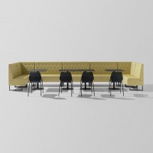 Sistem modular. Modul de colt. Sezut si spatar tapitate. Cadru din otel. Inaltimea sezutului este de 75 cm. Accesorii: Inchidere spatar cu panou tapitat. Priza Schuko sau USB pe tapiteria sc.. -