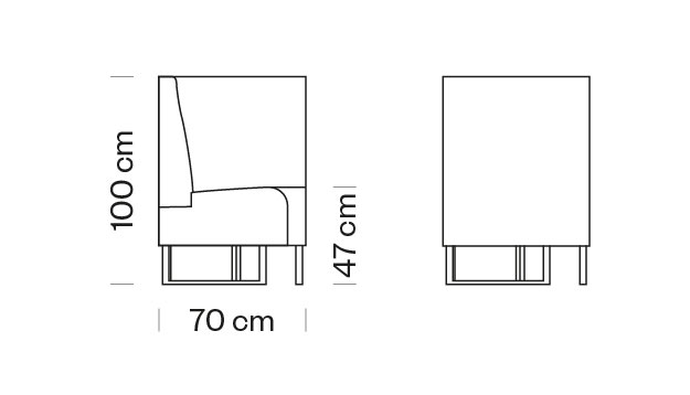 Sistem modular de asezare, tapitat. Poate fi alaturat cu celelalte sisteme modulare Ambit, din colectia Metalmobil.Dimensiuni:.. -