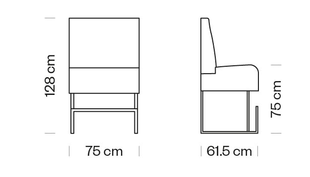 Sistem modular. Modul liniar L 75 cm. Sezut si spatar tapitate. Cadru din otel. Spatar H 100 cm. Accesorii: Inchidere spatar cu panou tapitat. Inchidere partea inferioara a cadrului cu panou.. -