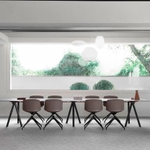 Designer Konstantin GrcicBrut este un model de masa cau cadrul din fonta vopsit in pulbere de poliester sau tratat cataforetic si pictat in pulbere. Elementele de imbinare sunt din lemn de s.. -