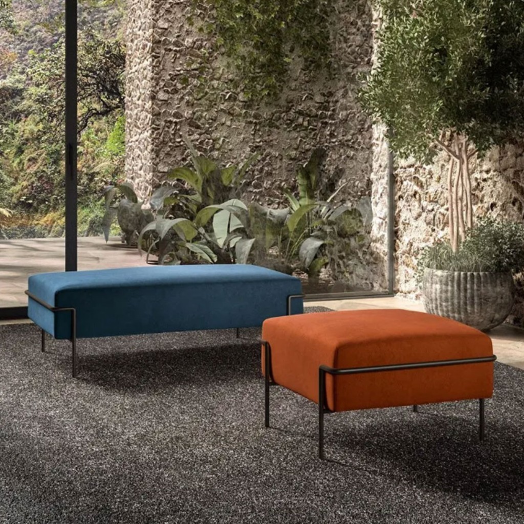 Cadrul taburetului este din fier forjat, zincat sau vopsit in pulbere de poliester. Tapiteria este din poliuretan extrudat cu capac detasabil din tesatura Kvadrat (Divina MD, Divina Mélange,.. -