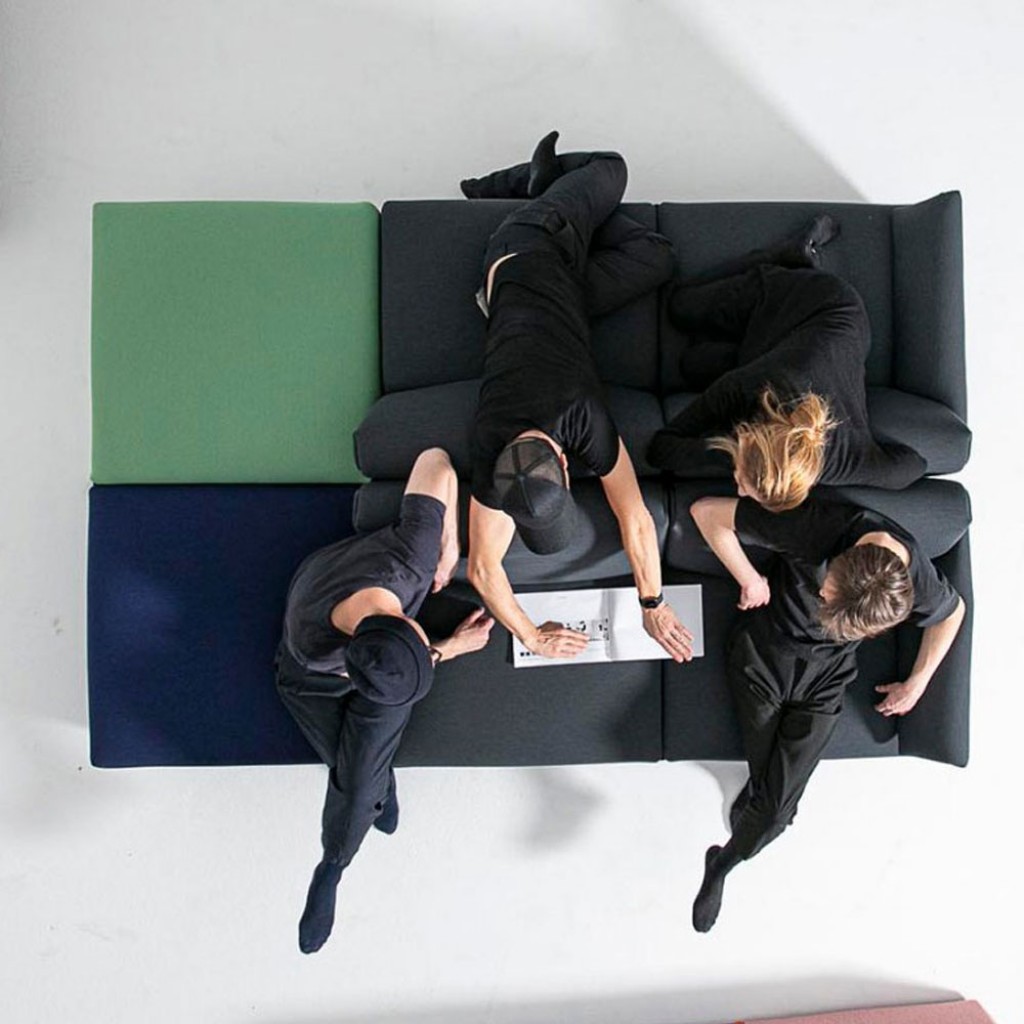 Costume face parte dintr-un ansamblu de elemente modulare compus din fotoliu, tabureti si canapele cu doua sau trei locuri. Structura este una subtire din polietilena reciclata, de 4 mm. Hus..