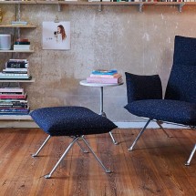 Cadru din tija de otel, vopsit cu pulbere de poliester sau tratat cataforetic. Perne din poliuretan expandat cu husa detasabila din material textil (pentru interior in Crevin Xeon, Kvadrat „.. -
