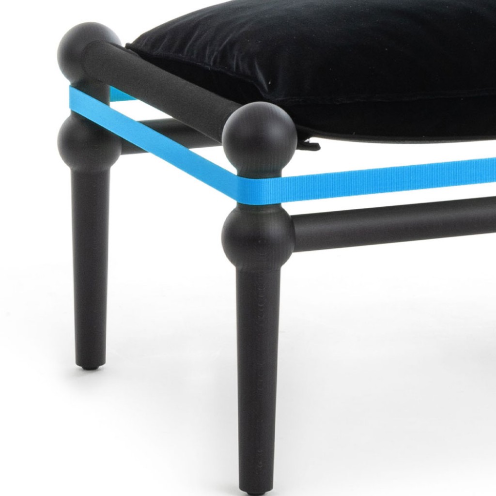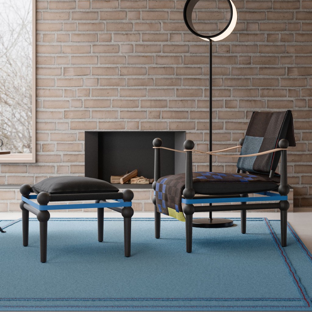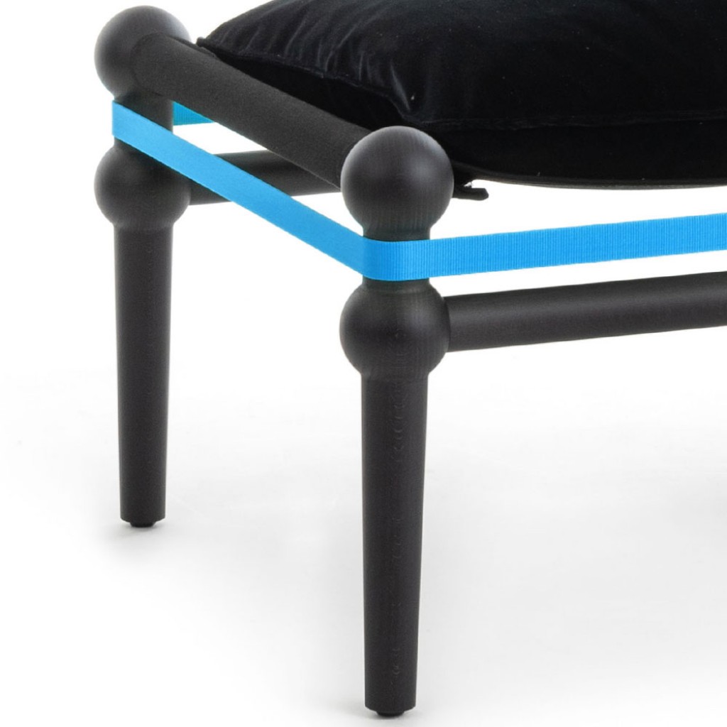 Materiale: Cadru din lemn masiv de fag, vopsit natural sau negru cu anilina. Sezut din material autoportant si husa perna din material detasabil. Curea de tensionare din poliamida.Designer -.. -