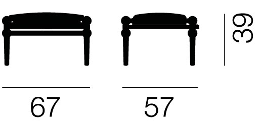 Cadrul taburetului este din fier forjat, zincat sau vopsit in pulbere de poliester. Tapiteria este din poliuretan extrudat cu capac detasabil din tesatura Kvadrat (Divina MD, Divina Mélange,.. -