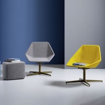 Melody Lounge si taburetul sau asortat se alatura familiei de scaune Melody, subliniind inca o data senzatiile de confort, relaxare si protectie datorita liniilor moi si materialelor atent s.. -