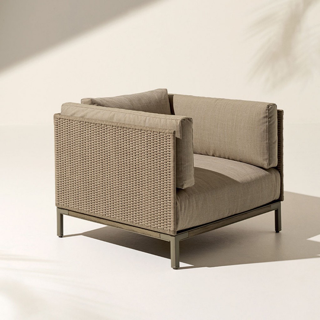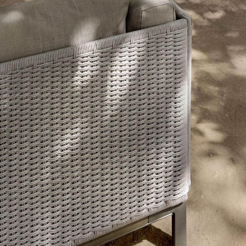 Ethimo si Christophe Pillet prezinta o noua varianta a Colectiei Yacht, Baia. Panourile de exterior din franghie tesuta de culoare taupe, combinate cu o rama din aluminiu de culoarea noroiul.. -