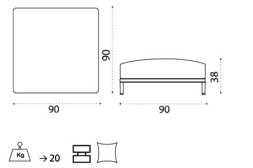 Taburet pentru terasa 90 x 90 cm, Ethimo colectia Baia Rope