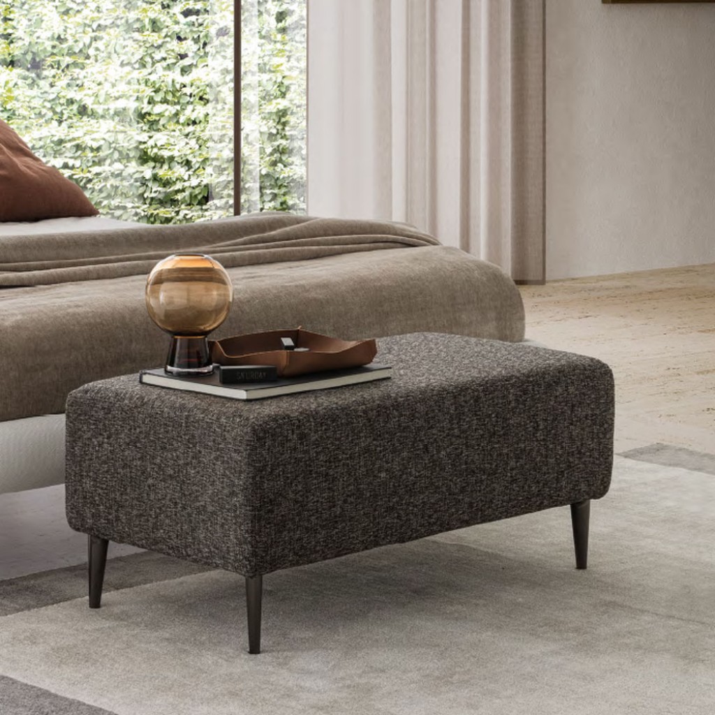 Volume soft pe un cadran metalic elegant, cu patru picioare rafinate si subtiri. Eline este un taburet dreptunghiular care aduce inovatie in camera de zi, actioneaza ca un scaun sau ca o masuta de cafea.